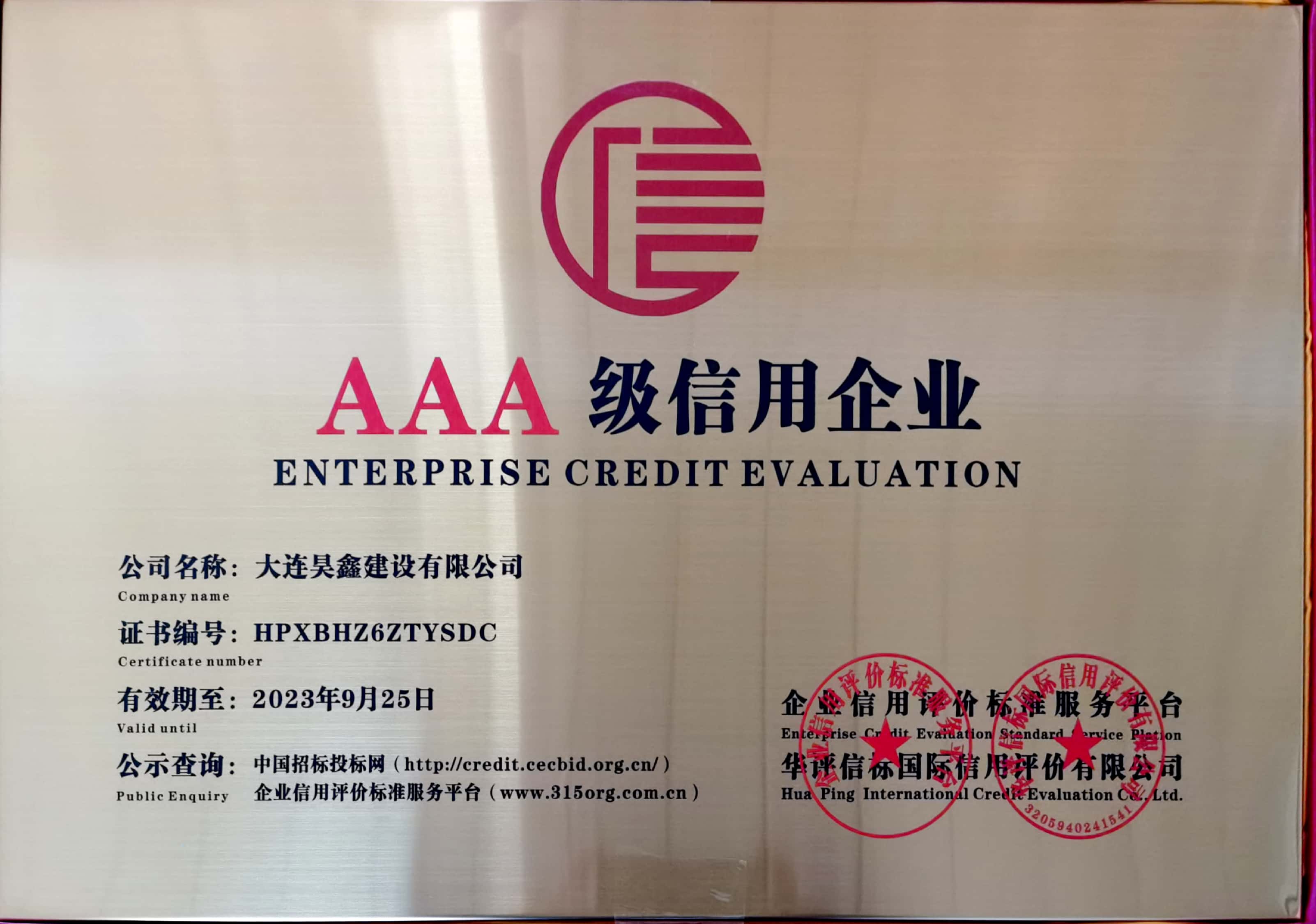 AAA企業(yè)信用等級