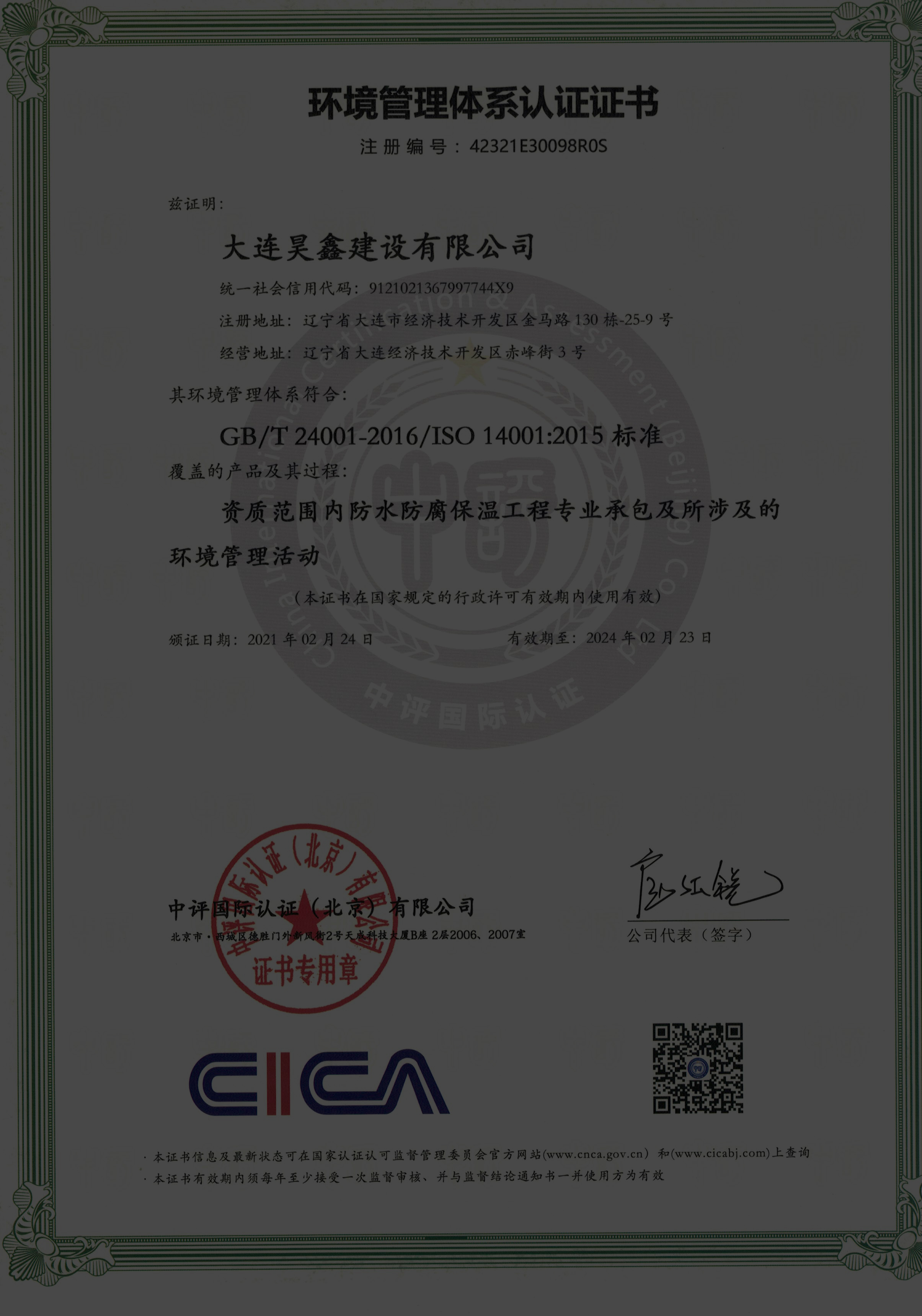 更名大連昊鑫建設(shè)有限公司